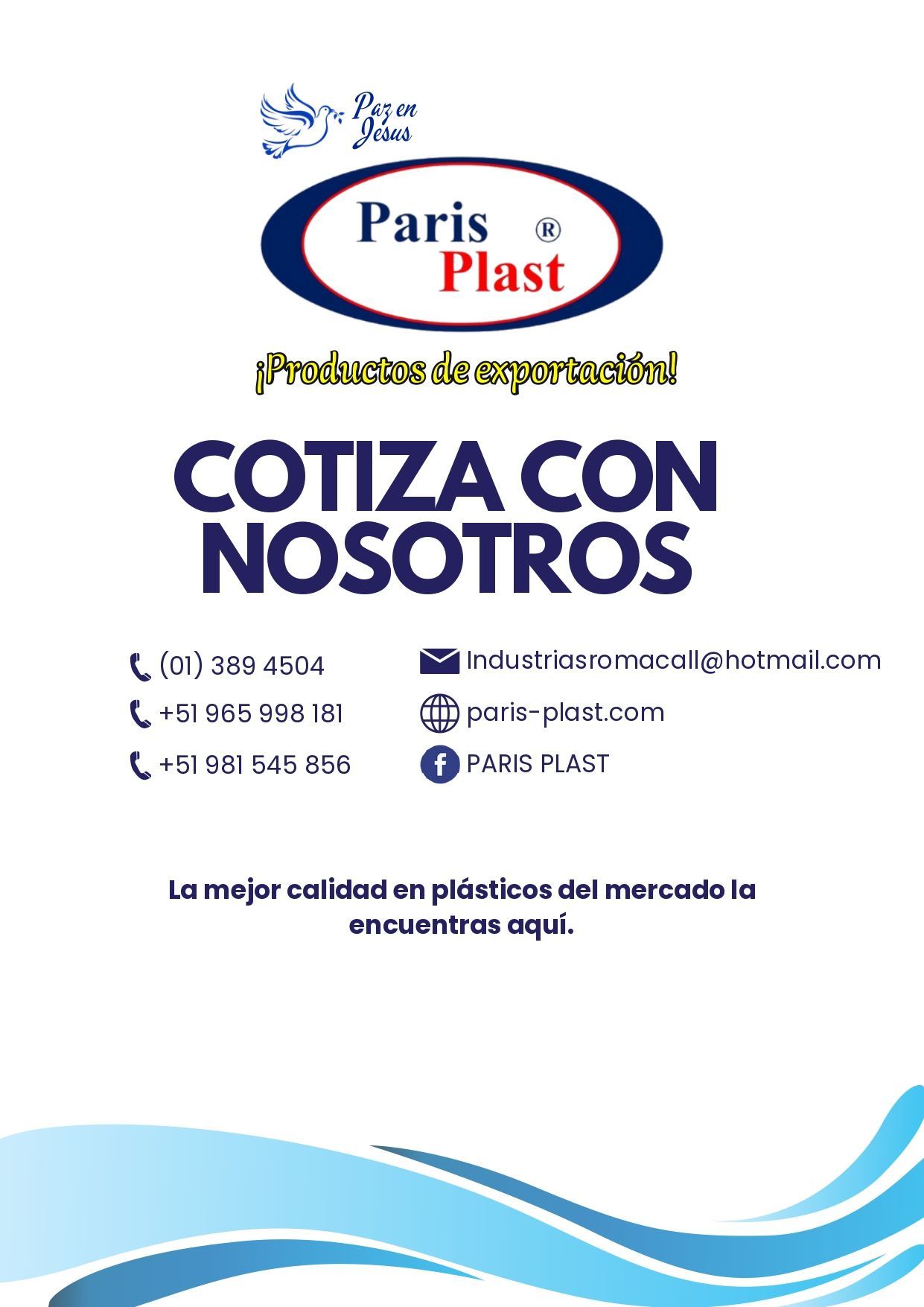 Somos Paris Plast, una empresa que cuenta con más de 15 años de experiencia en el rubro, tiempo en el cual nos hemos posicionado como una de sus mejores opciones en cuanto a la fabricación de productos plásticos de la más alta calidad.